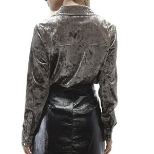 NWT OAT NY Contemporary Grey Velvet Western Style Cropped Snap Shirt Size M