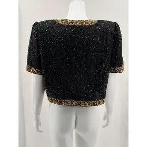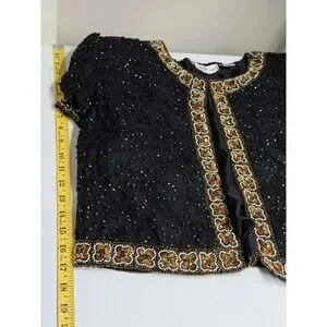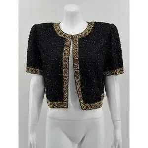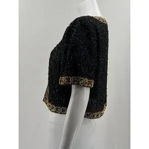 Vintage Laurence Kazar Jacket Womens Large Black Beaded 100% Silk Evening Formal