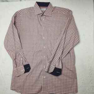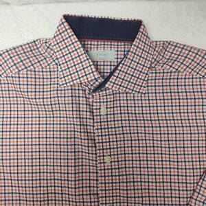 Eton Shirt Mens 16 41 Orange Blue Check Contemporary Fit Dress Button Up