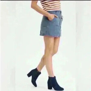 American Eagle high rise A- Line Corduroy zip up Skirt with pockets. Blue in color. Size 0. Length is Approximately 14” shown in photo. Closet kept in a smoke free home.