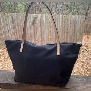 Kate Spade Black Nylon Tote or Shoulder Bag Leather Handles & Hot Pink Interior