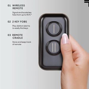 Compact key finder with two black fobs. Easy to use. Modern design.