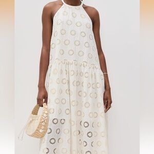 Madewell Embroidered Drop-Waist Maxi Dress Floral Eyelet Size Large bachelorette