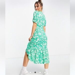 New Look Emerald Green Romantic Daisy Floral Cottagecore Wrap Dress Size 8