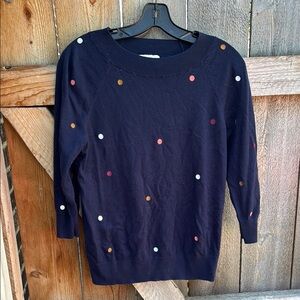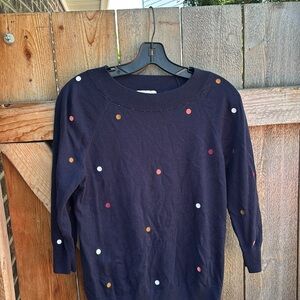 LOFT Blue lightweight Crew Neck Sweater with Polka Dots size small