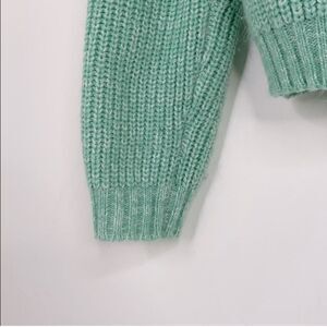 Mint green, this top is similar to a thick cable knit but lighter weight.(db)