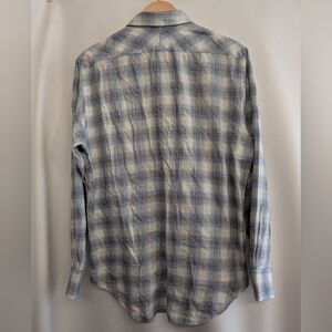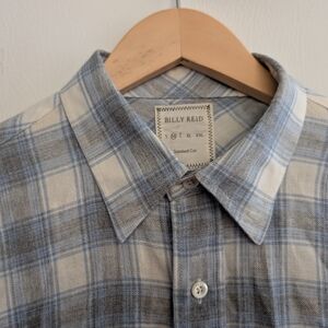 Billy Reid Blue Grey Plaid Cotton Wool Blend Standard Cut Button Up Shirt - M