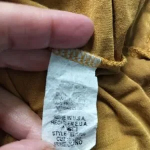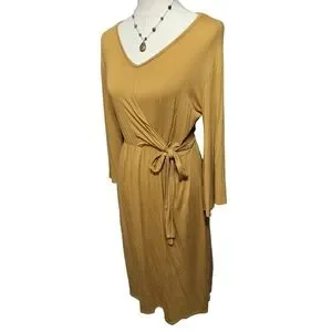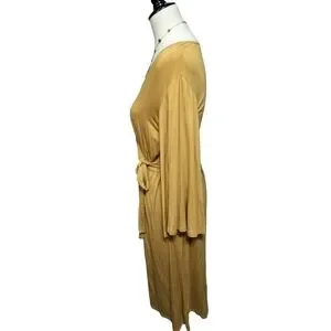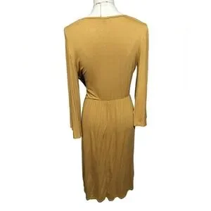 2250) Roolee Gold Mock Wrap 3/4 Bell Sleeve Pullover Dress Size Medium