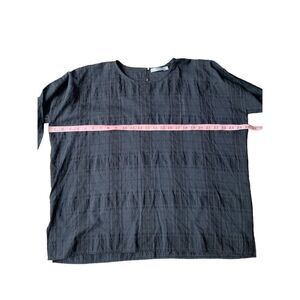 VINCE Black Shadow Plaid Drapey Easy Top. It’s an oversized S, so it can fit up to a L. Best fits a M/L in my opinion, but it depends how you want it to fit. $345 retail. NWT, no flaws.