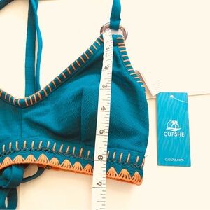 Cupshe Deep Lagoon Stitch Textured Bikini Top & High-Waisted Bottoms Set Size XS