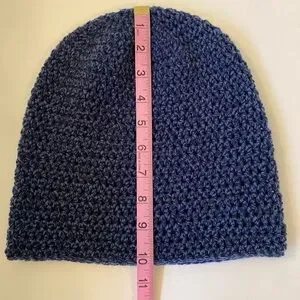 Stay warm and stylish with this navy blue crochet beanie. Perfect for any casual outing. Unisex.