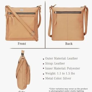 Luxeoria Pebble Grain Leather Crossbody Bag Light Peach Tan Beige Classic Medium