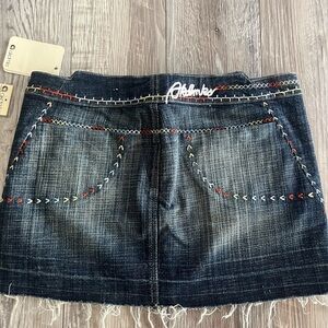 Akdmks Denim Mini Skirt with Colorful Stitching