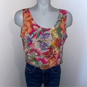 Tess vintage tank top scoop neck silk purple pink orange floral large