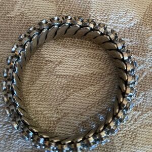 For the baby blue lover a touch of elegance with this stunning and unique stretch bracelet there are 3 darker stones hard to find like a treasure hunt. 6 1/2 and even a tad tighter because this is a thickish bracelet see side photo.