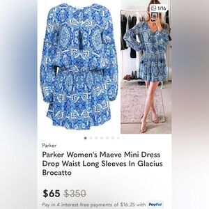 NWT Parker Maeve 100% Silk Long Sleeve Elastic Waist Dress