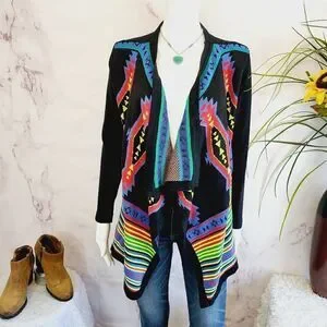 Excellent condition no flaws First Nice European brand Southwestern pattern cardigan sweater soft knit. Open front and draped style great for Spring! size small