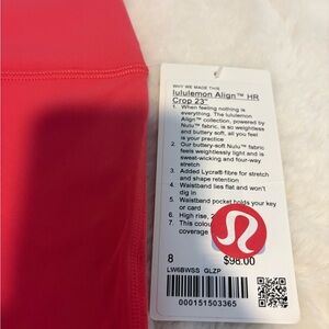 Lululemon align high-rise pink glaze 23” cropped leggings size 8 NWT