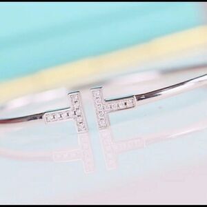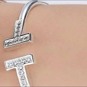 + Silver Tone T Bar Open Brscelet