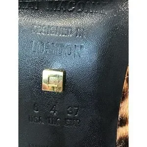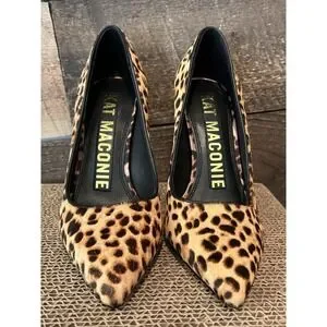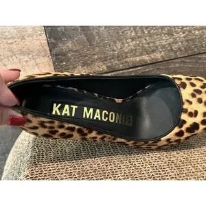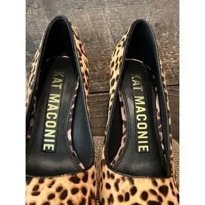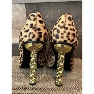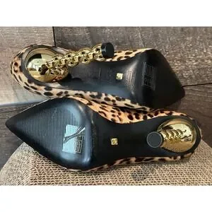 KAT MACONIE Lydia Leopard Pointed Toe Pumps Size 6 Gold Chain Heels Black Brown