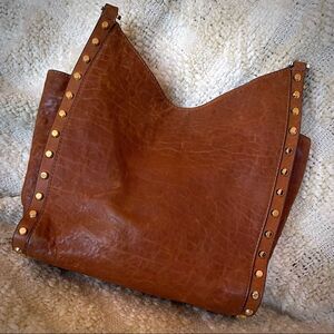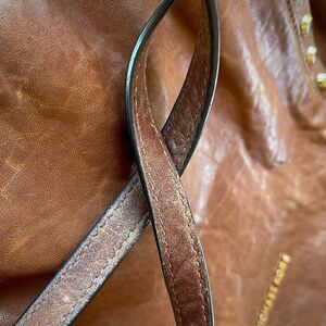 Michael Kors Leather Satchel, Cognac Brown, Gold Metallic Trim.