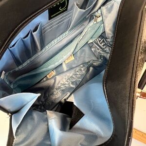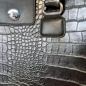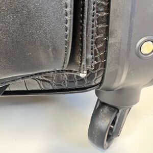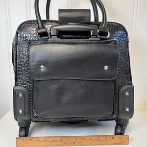 Stylish black croc-embossed rolling bag with silver accents. Perfect for travel. I never used this bag. It does have a few nicks as pictured from storage. Like new