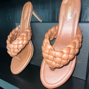 Step out in style with these chic brown braided heeled sandals. Perfect for any occasion. Never been worn. Size 12.