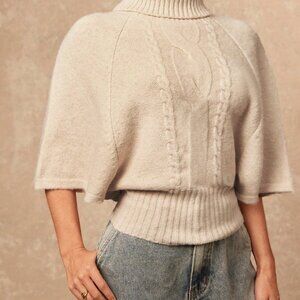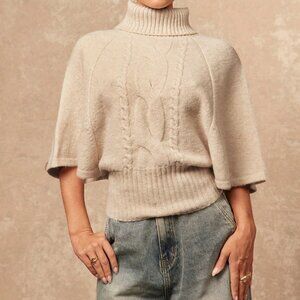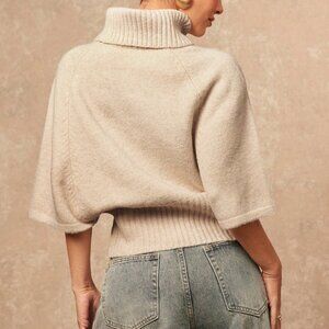 Elevate your late fall style with this khaki casual sweater, featuring a cinched waist and batwing textured turtleneck design. Made with rib-knit details, it offers a regular fit, high neck, and three-quarter length raglan sleeves for a comfortable and sophisticated wear. Perfect for adding a touch of elegance to your outfit.