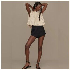 NWT Anthropologie Mare Mare sleeveless pleated bubble hem top with button loop closure in neutral color. Perfect eye-catching top for a unique outfit or event.