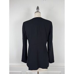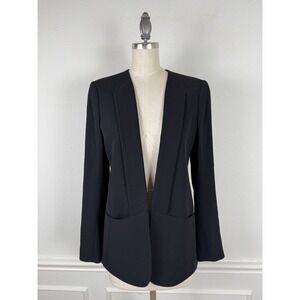 Theory Open Front Blazer Womens S Black Virgin Wool Viscose Minimalist Chic