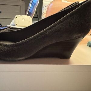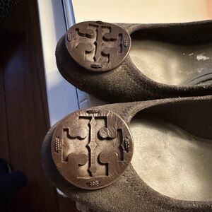 Tory Burch wedge shoes size 8 M. Grey suede. Wedge 2.75 inches at the heel.
