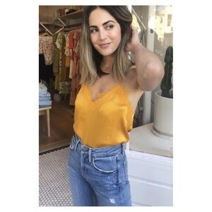 CAMI NYC • The Racer Crinkle Lace Trimsilk Tank Top In Honey