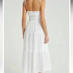 A stretchy smocked bodice shapes a vacation-ready midi dress that will take you from the beach to dinner in effortless style.