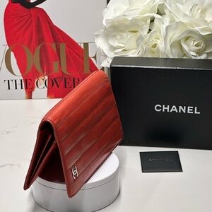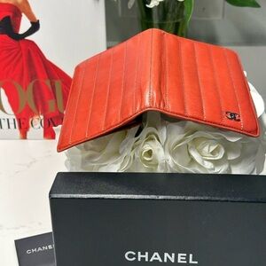 🔥🔥🔥Chanel Vintage Orange Red Leather Wallet + Box + COA