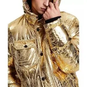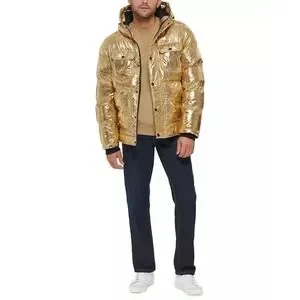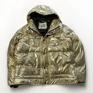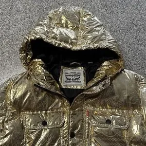 Levi's Puffer Jacket Men's L Gold Bandana Paisley Quilted Hooded X2814 $225