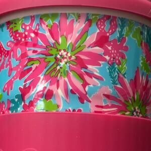 Lilly Pulitzer Pink Green Floral Ceramic Travel Mug Tumbler Cup Silicone Sleeve