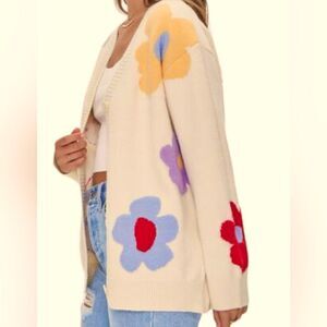 FOREVER 21 FLORAL PRINT KNIT CARDIGAN SWEATER SIZE SMALL OVERSIZED