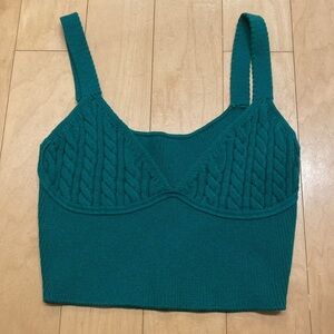 Ronny Kobo Lyra Cable Knit Green Cutout Knit Bra Crop Top Size S