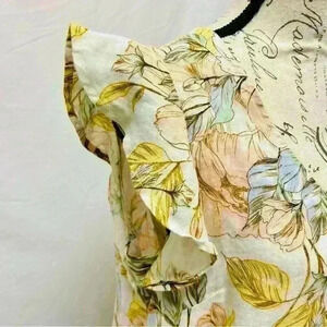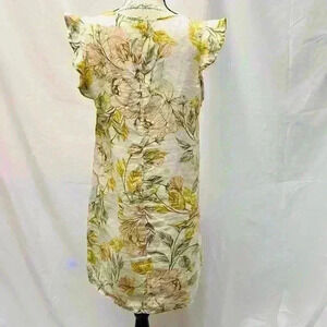 Nicole Miller New York 100% Linen Pastel Floral Shift Dress sz S