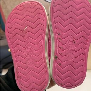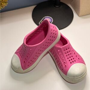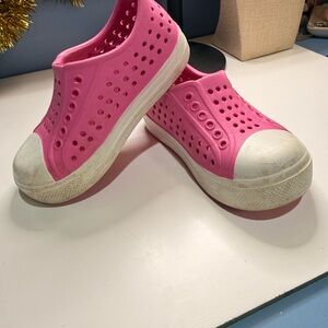Comfortable slip-on design. Bright pink color. Ideal for water activities.