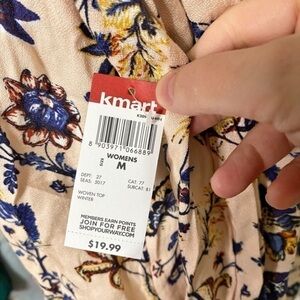 Basic Editions Cream Floral Bohemian Style Blouse NWT