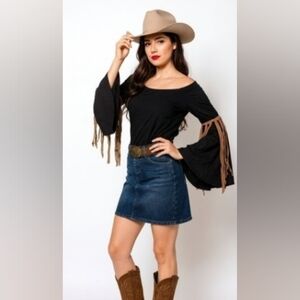 Judith March Fringe Bell Sleeve Top Western Boho Small