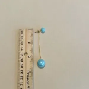 Blue pearl tassel drop dangle stud earrings in gold tone