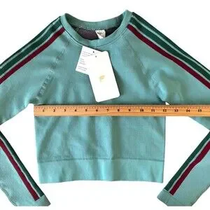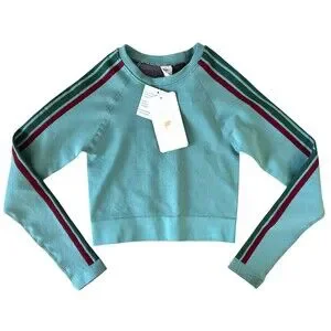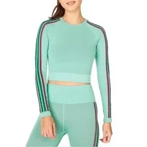 Fabletics Women's Aisley Seamless L/S Crop Top Size XS Lunar Blue Stripe Multi