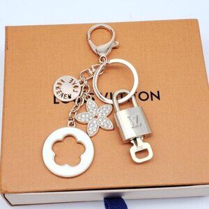 Elegant flower keychain featuring a stylish Louis Vuitton padlock charm. Perfect for adding a touch of luxury to your accessories.
