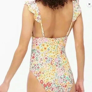 J.Crew Factory Floral Ruffle-Shoulder V-Neck One Piece Swimsuit.