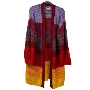 FARM Rio chunky knit colorblock longline cardigan M/L rainbow