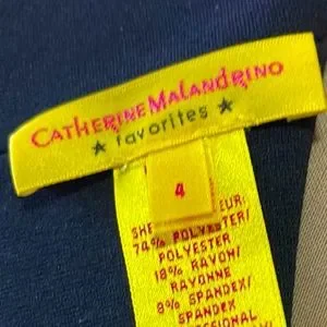 Catherine Malandrino Favorites 3/4 sleeve dress in Noir. Career dressing is easy wearing unique dresses like this one! The dress cut bring out your nice figure and the pockets add to the appeal. Pair with black or red pumps for a finished office look. Faux leather details had sophistication to the look with an attached belt sash that can be worn a variety of ways.