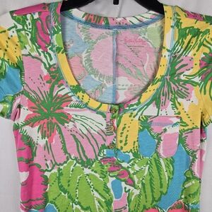 Lilly Pulitzer Womens Size Small 100% Pima Cotton Vibrant Colorful Tropical Floral Big Flirt Britton Dress
