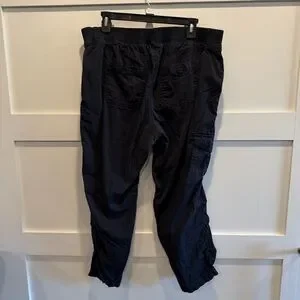 Versatile black cargo pants by sonoma. Features multiple pockets. Comfortable fit for daily wear. Good condition, no noticeable flaws. Made of 98% cotton, 2% Spandex. Size 18 in women’s.